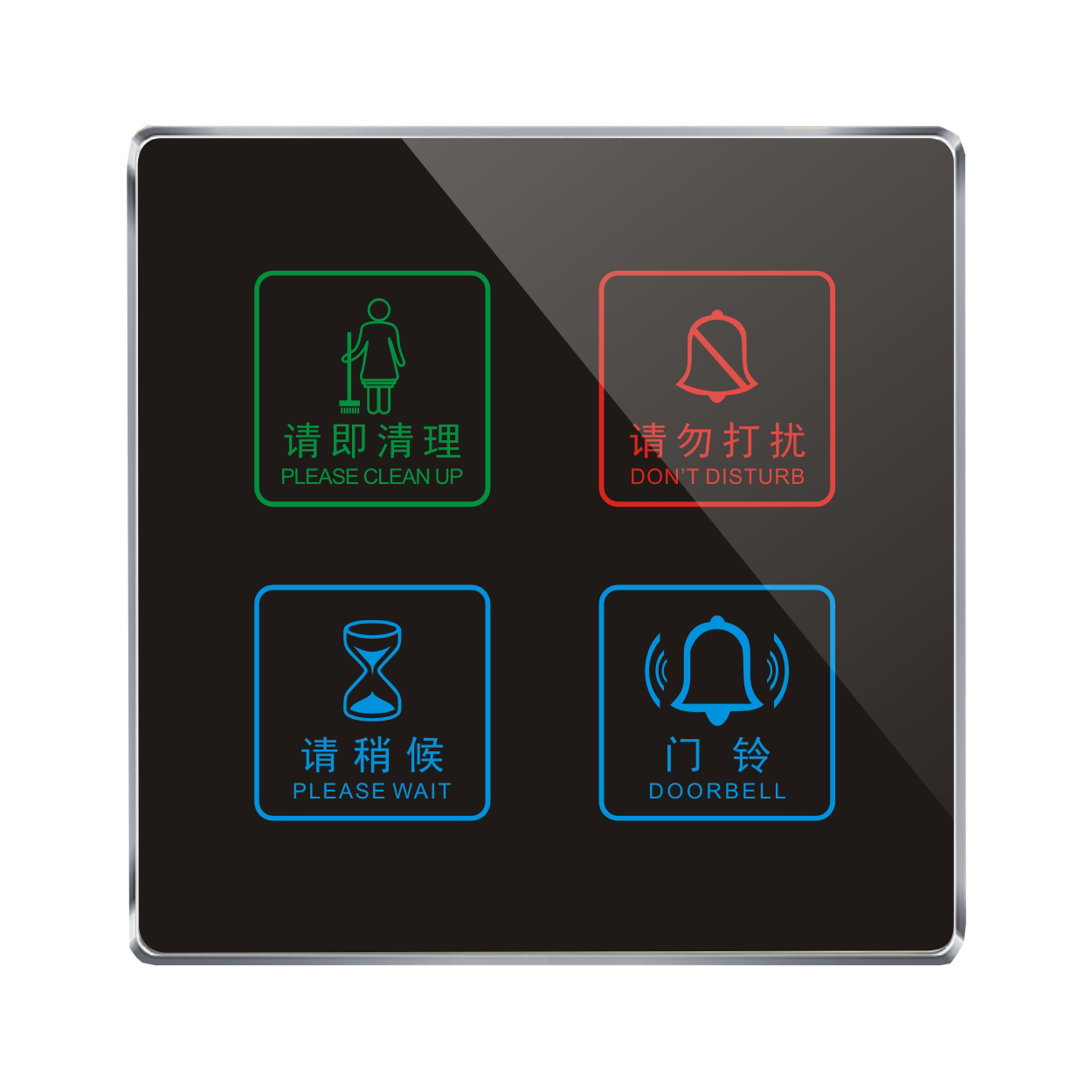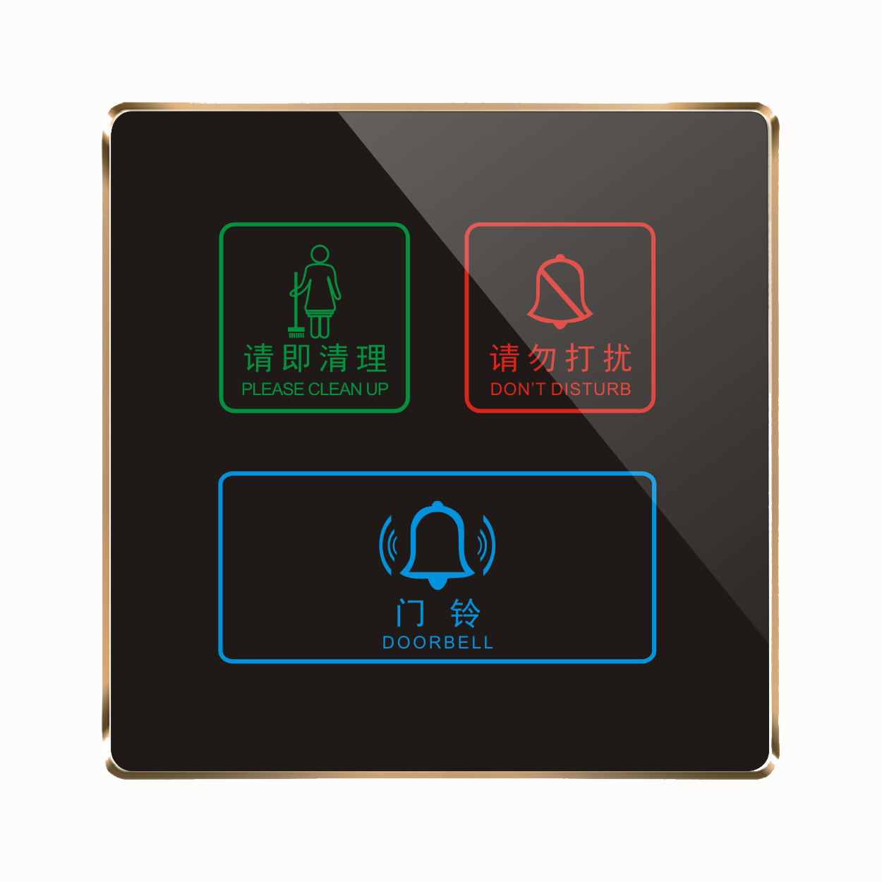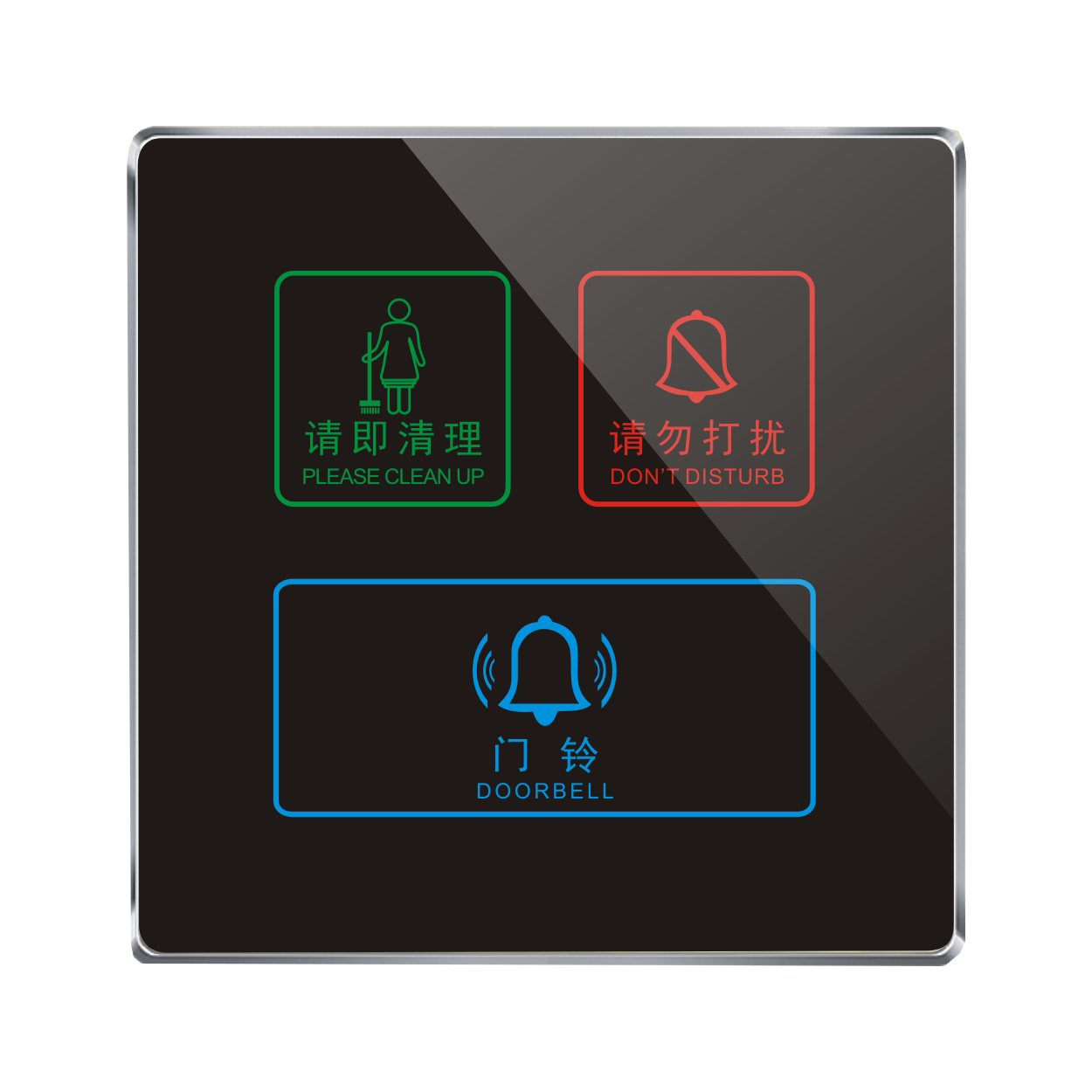2、客人按下房間內(nèi)的"請(qǐng)勿打擾”開(kāi)關(guān),液晶屏的"請(qǐng)勿打擾”圖案背光亮起,門(mén)外顯示屏中提示請(qǐng)不要打擾,此時(shí)門(mén)鈴按鍵不起作用。