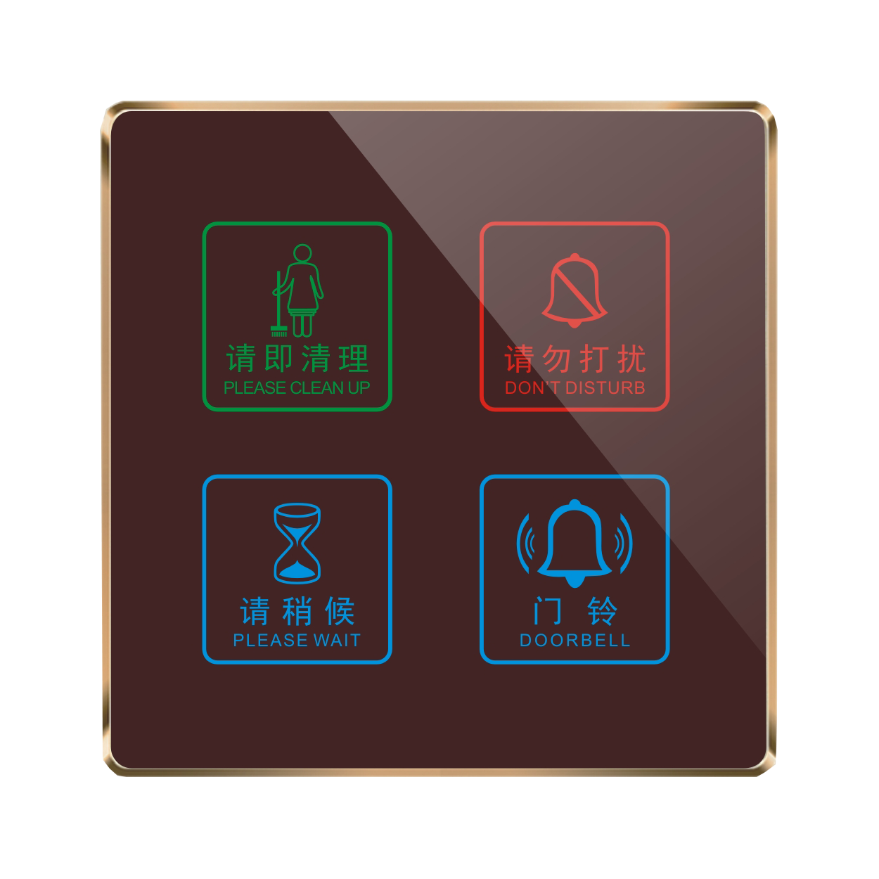 2、客人按下房間內(nèi)的"請(qǐng)勿打擾”開關(guān),液晶屏的"請(qǐng)勿打擾”圖案背光亮起,門外顯示屏中提示請(qǐng)不要打擾,此時(shí)門鈴按鍵不起作用。
